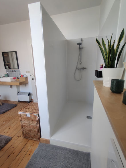 Op de 2e verdieping treffen we nog 2 ruime slaapkamers aan (slpk 3//15m² en slpk 4//15m²). De vloer in deze kamers is op dit moment nog OSB, ook de kleine nachthal (1 m²) op deze verdieping kan nog verbeterd worden. Vanuit de slaapkamer vooraan is er een uitklapbare trap die leidt naar een extra bergzolder onder het dak.
